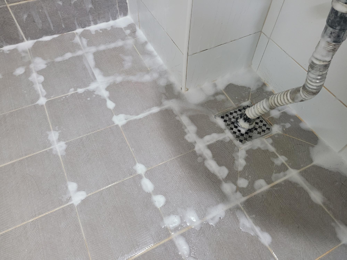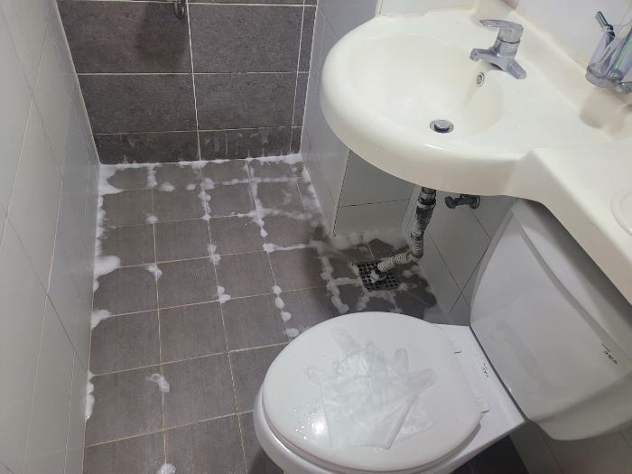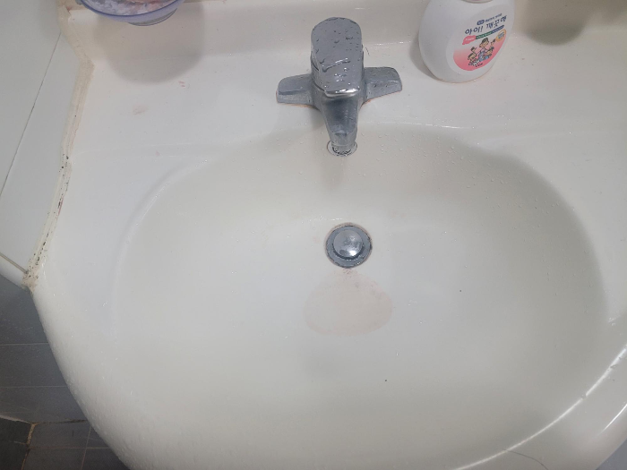 그리고, 환풍기를 돌려놓고, 대략 1-2시간 정도 기다린 뒤에 물로 깨끗이 씻어주었다. 중간중간에 수세미로도 같이 조금 닦아보았다.