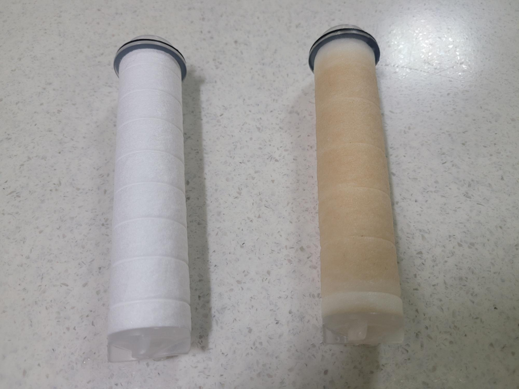 새 필터와 헌 필터를 비교해 보니 확연하게 차이가 드러난다. 엄청나게 누래진 것이 놀랍다. 수돗물이 깨끗한 줄 알았는데, 대체 무슨 일이 있었던 것일까?