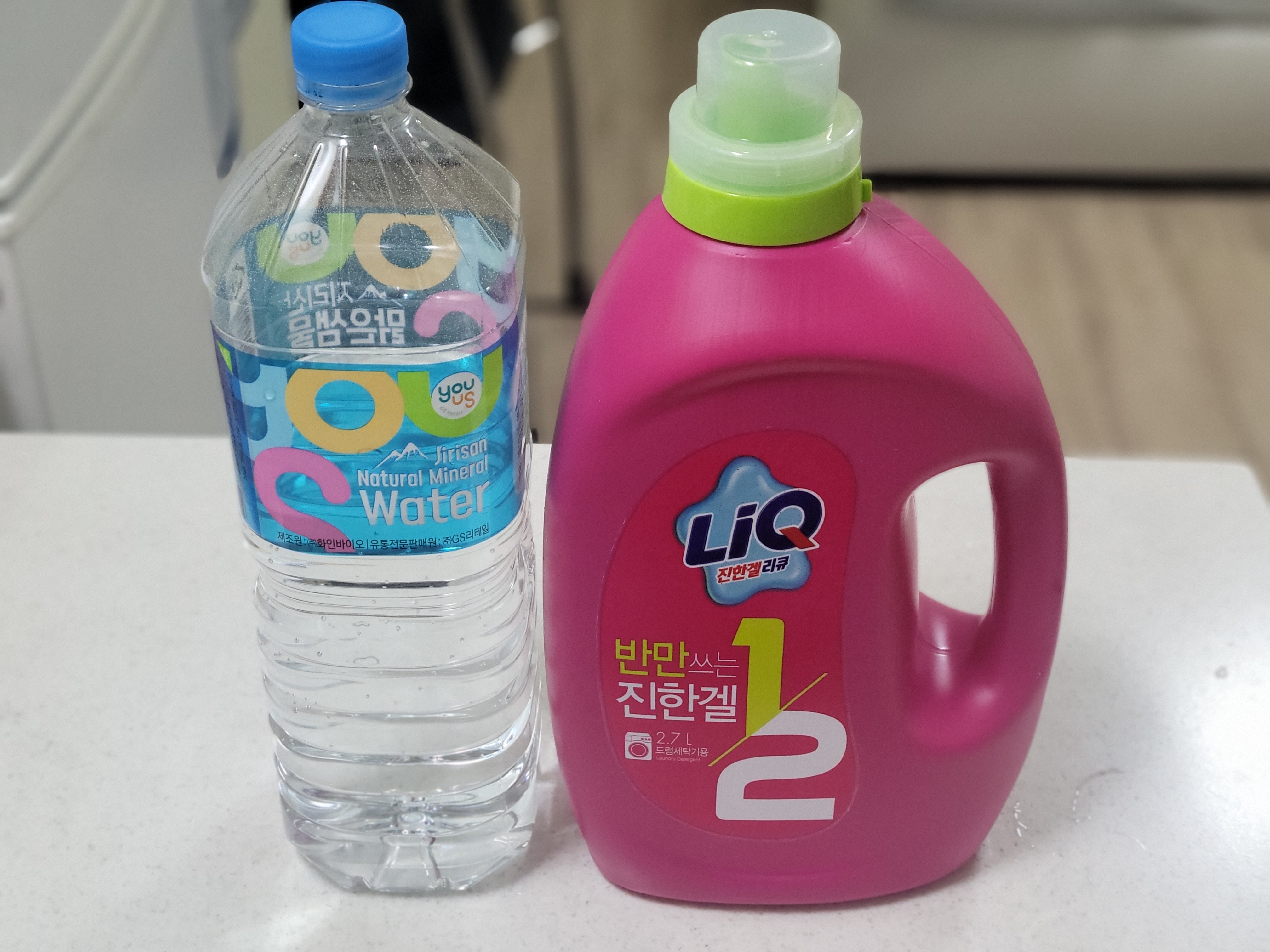 1.5리터 물통을 세워보면 거의 같은 높이임을 알 수 있습니다.