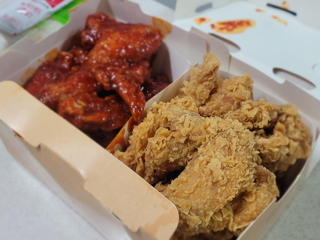 야밤에도 침이 고이는 비주얼입니다. BHC 뿌링클이 참 맛있긴해도 가끔씩은 이렇게 무난하게 반반을 먹어주는 것도 좋습니다. 질리지 않는 맛이죠.